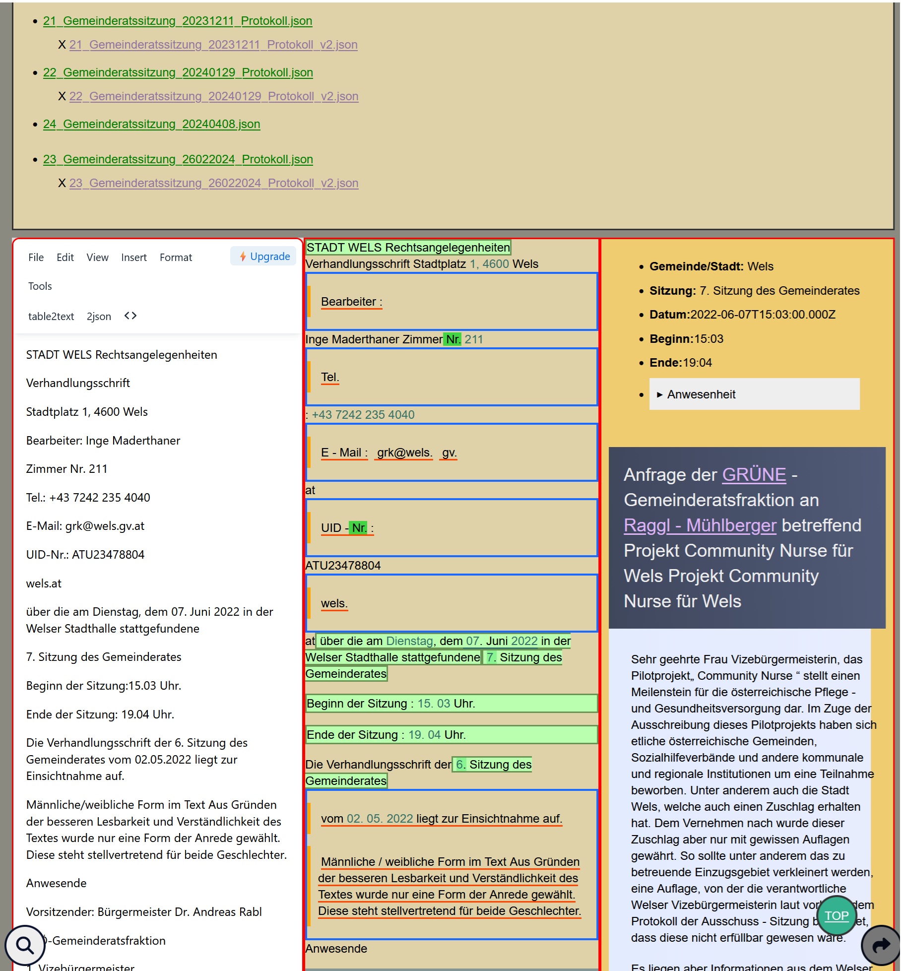 • Kernziel: Automatisierte Überführung massiver Mengen unstrukturierter Daten (Gemeinderatsprotokolle im PDF-Format) in eine strukturierte, durchsuchbare Datenbank.