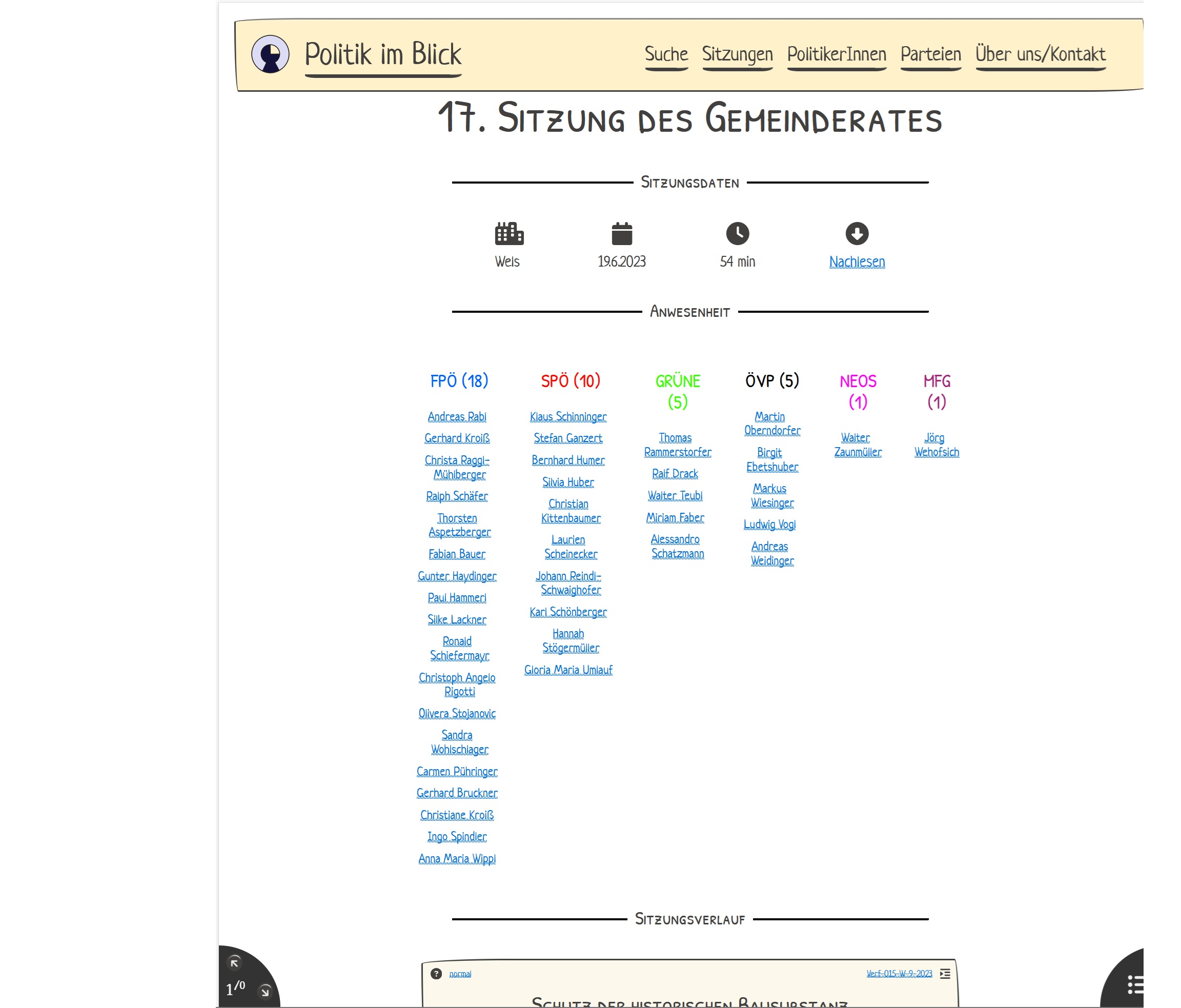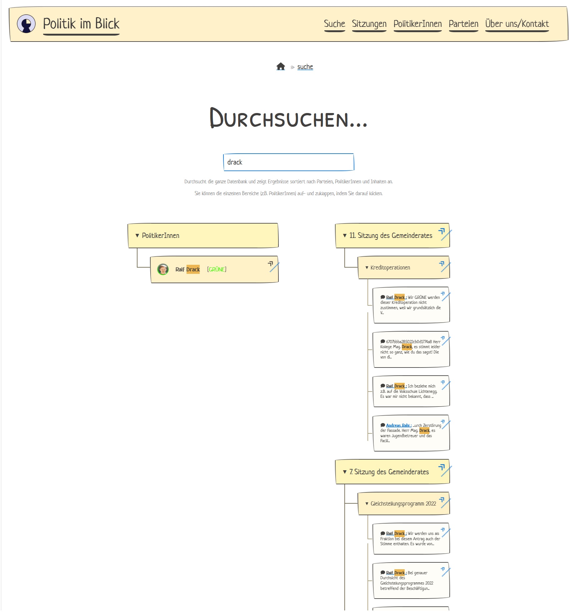 • Validierung & Impact: Die Plattform wurde aktiv von lokalen Parteien zur politischen Arbeit genutzt, und es bestand reges Interesse an den jeweils neuen Versionen.