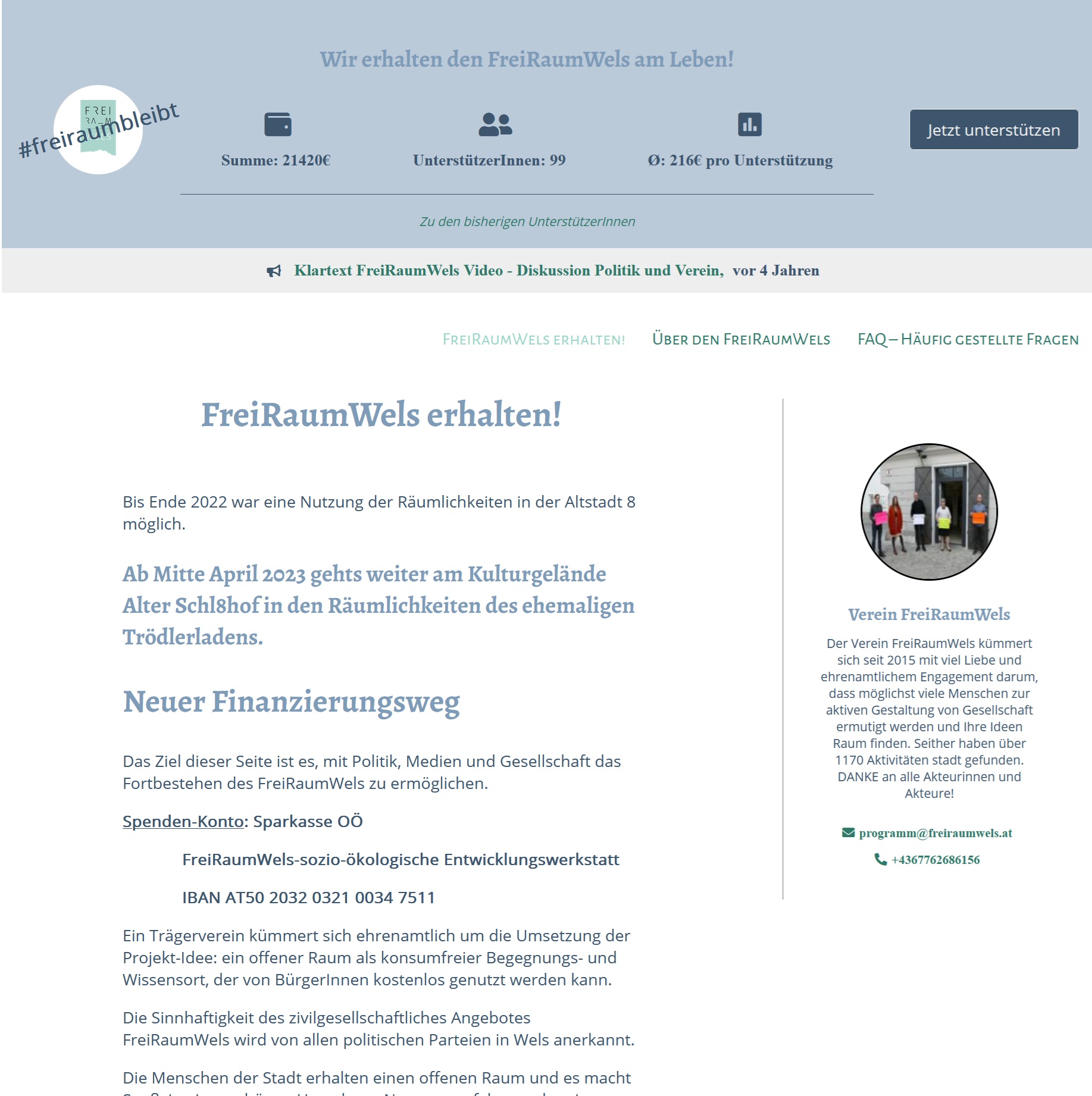 • Key Takeaway: Ein kleines, engagiertes Team (der FreiRaumWels-Verein in diesem Fall) kann innerhalb kürzester Zeit Großes schaffen (21.420€ an Spenden sammeln).